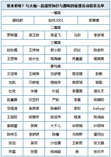图书馆对以上获奖的读者表示热烈的祝贺!欢迎各位读者今后能继续关注和积极参加图书馆发布的各项活动!