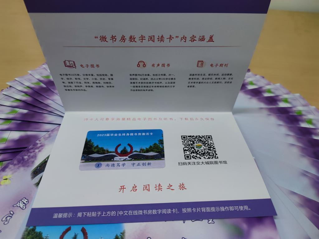 “微书房”拥有10万册数字图书和6万集有声图书。数字图书资源内容囊括了经典名著、名家小说、畅销书籍等各类图书;有声图书包括名家作品、经典文学、相声艺术及大量优质原创作品。“微书房”终身免费,资源无限量下载,账号一经激活开通,城院学子无论身在何处,都可“回”到母校的图书馆,享受随时随地“悦”读学习。